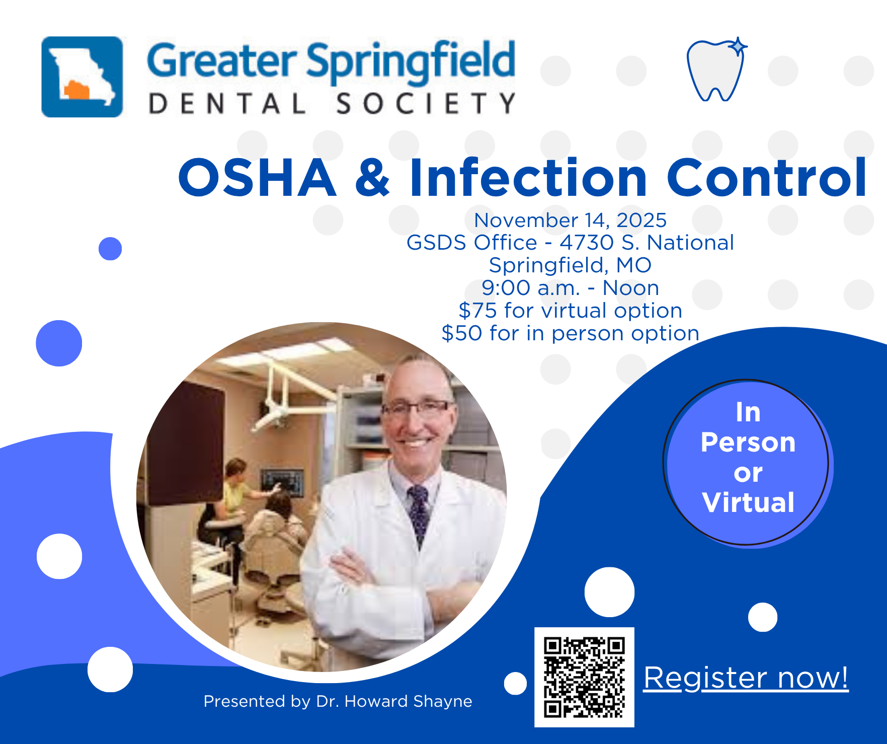 The mission of the Greater Springfield Dental Society is to fulfill our community responsibility by serving as the oral health advocate for our 16 county component area.